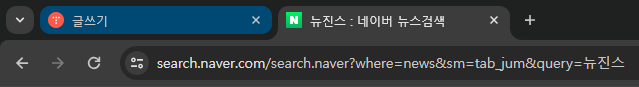 네이버에 '뉴진스'를 검색하고 주소창을 확인하면