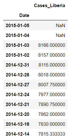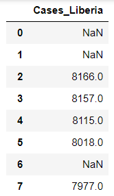 df_e.iloc[0:30,0:5]['Cases_Liberia'].interpolte(method='time').to_frmae()