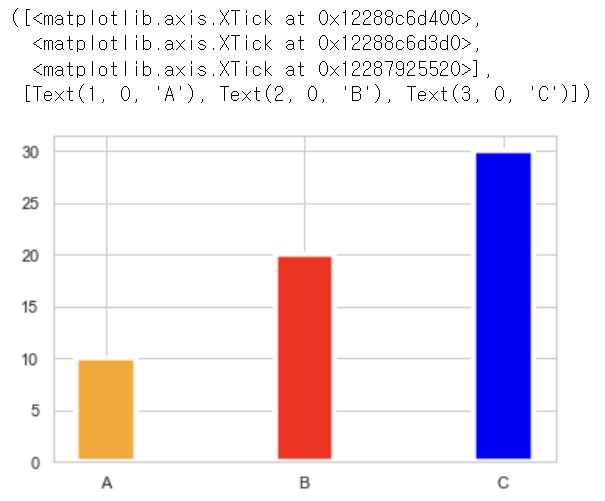 plt.xticks([1,2,3],['A','B','C']) # 눈금값 설정