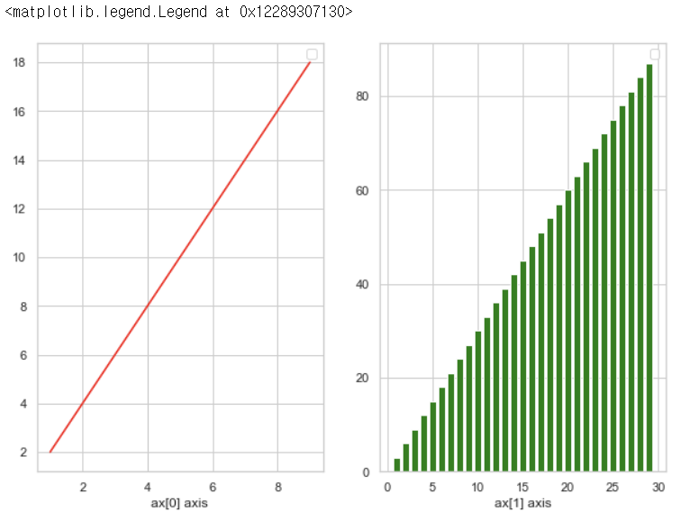 그래프를 여러 개 그리는 경우 subplots 을 사용하고, Figure (큰 도화지)안에 좌표를 찍어서 Axes (축)을 생성하여