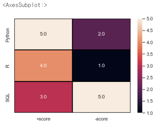 annot : 각 셀에 실제 값 또는 형식화된 문자열을 표시할지 여부 지정