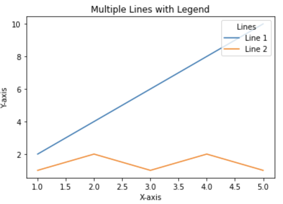plt.legend(loc='upper right', title='Lines', labels=['Line 1', 'Line 2'])