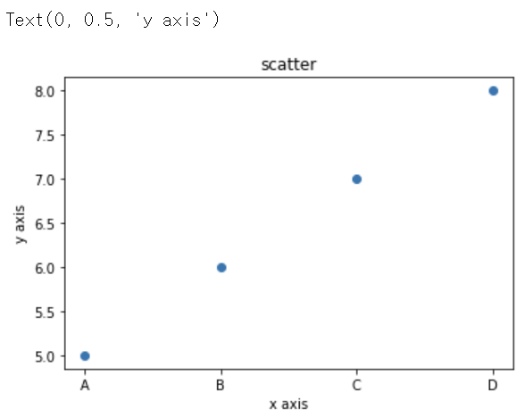 plt.xticks([1,2,3,4],['A','B','C','D']) # x축 값 1, 2, 3, 4를 각각 A, B, C, D로 설정