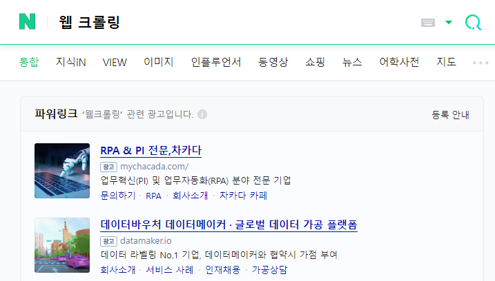 이는 네이버 검색 엔진이 웹 크롤러가 수집한 데이터에