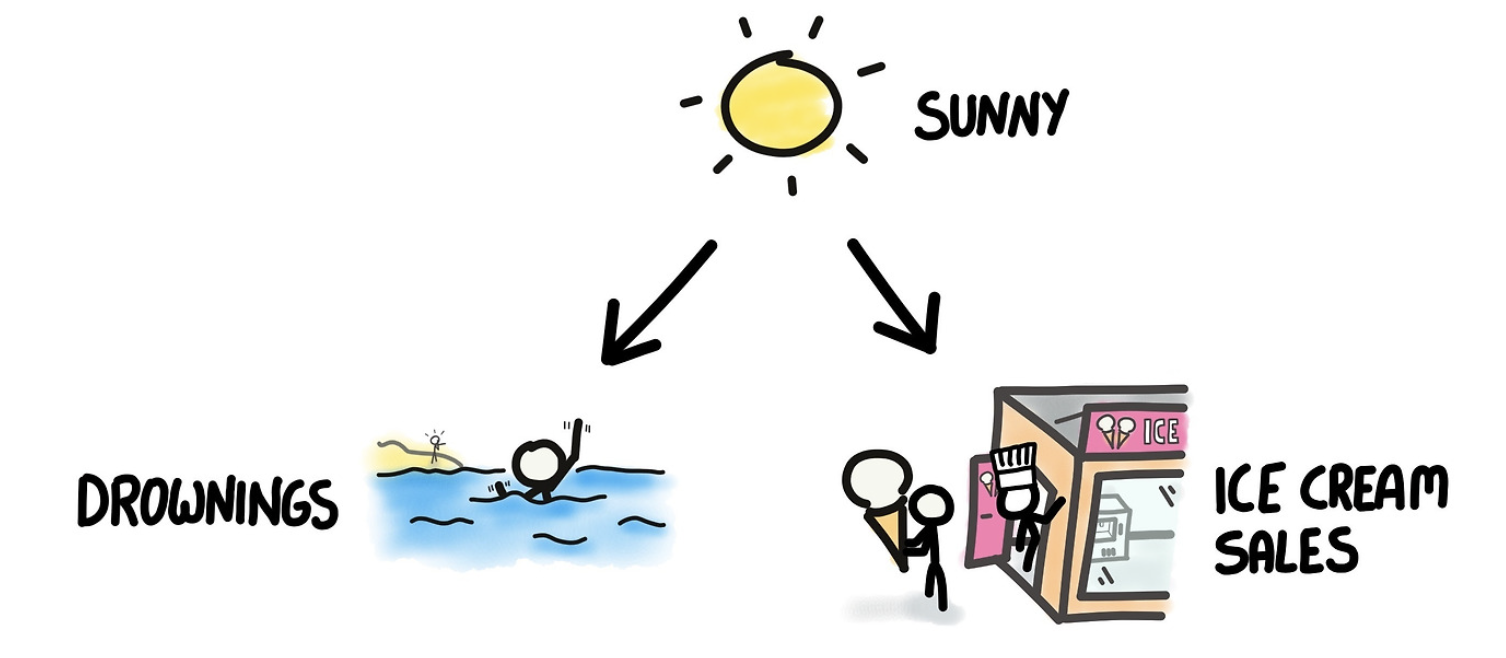 예를 들어, 여름철이 되면 아이스크림 판매량과 익사 사고가 동시에 증가하는 경향이 있다.