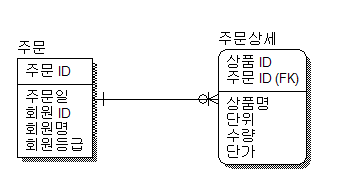 | 주문번호 | 상품코드 | 상품명 | 구매개수 |