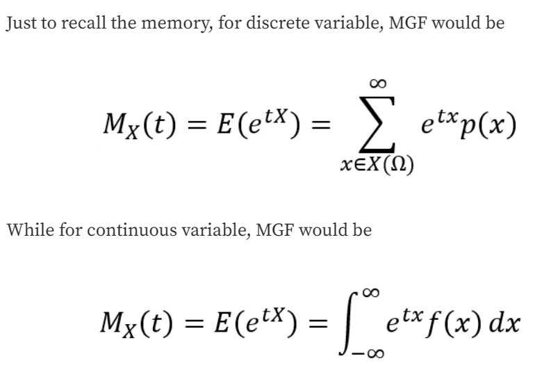 👉 그걸 가능하게 해주는 게 Moment Generating Function(MGF)
