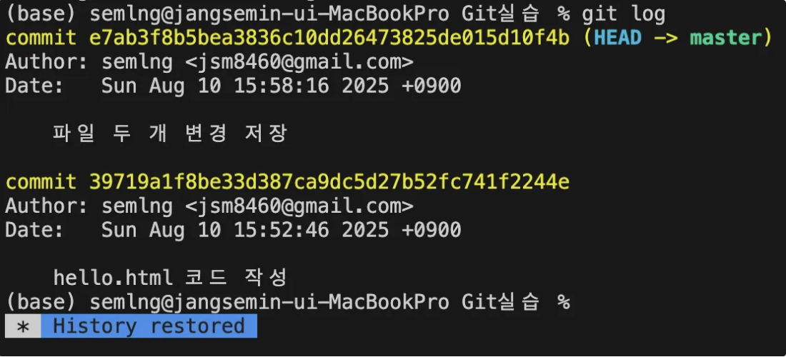 그동안 git commit으로 저장해온 모든 기록을 보고 싶을 때 사용하는 명령어