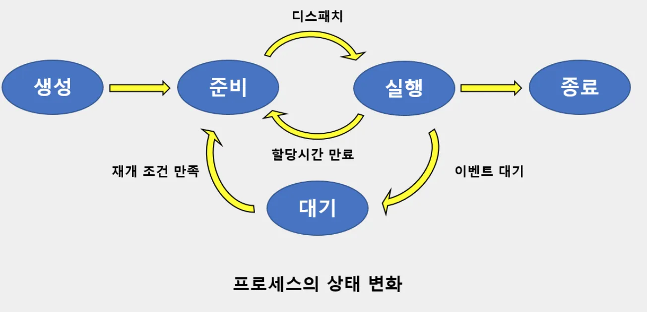 요약하자면, 프로세스의 상태 변화는 OS가 메모리와 CPU를 효율적으로 관리하기 위한 전략이며,