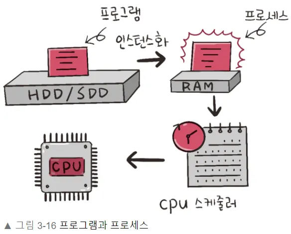 이는 마치 레시피(프로그램)를 보고 요리(프로세스)를 만드는 것과 같다.