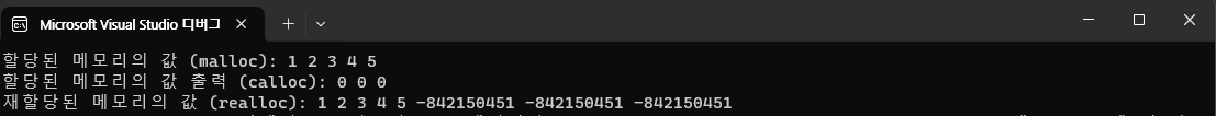 printf("\n재할당된 메모리의 값 (realloc): ");