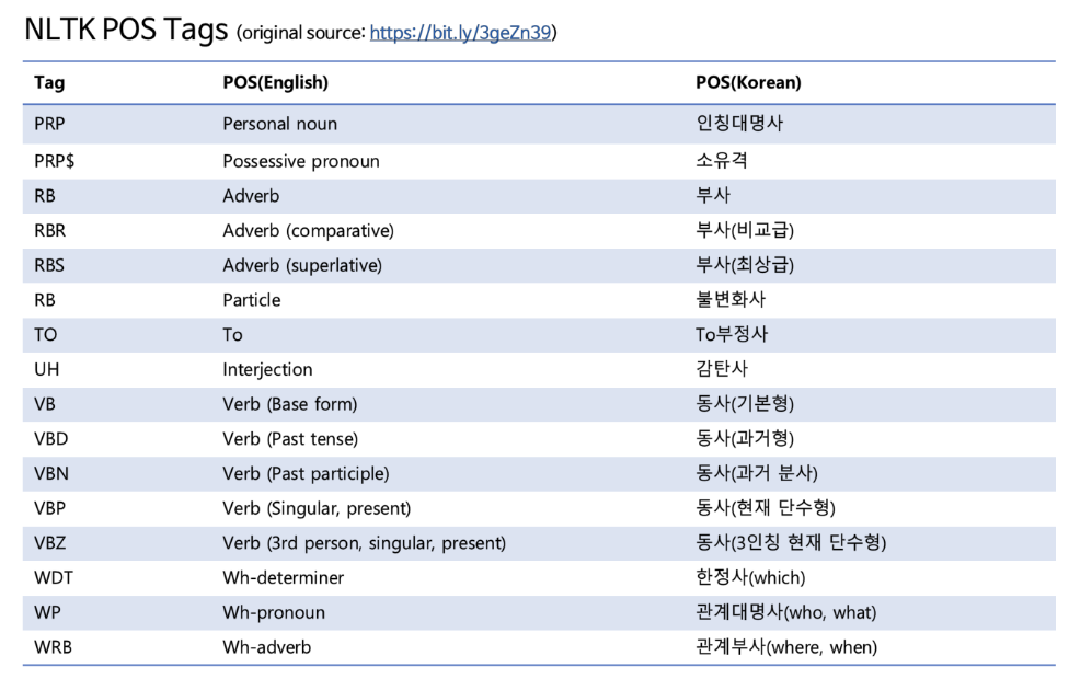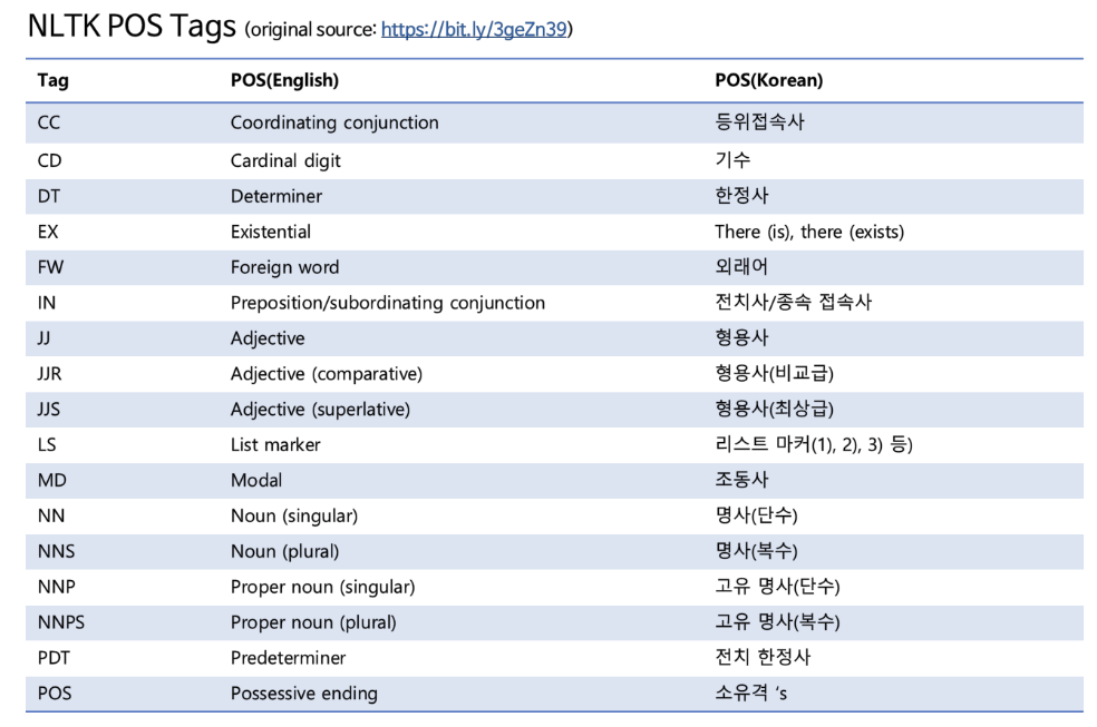 NLTK를 통해 품사 태깅 실습을 해보자